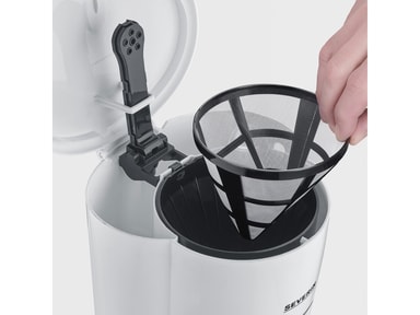 Filterkaffemaskin med glaskanna med en kapacitet på 1,25 liter, vilket motsvarar 10 koppar kaffe. En droppstopp gör det möjligt att ta bort kannan även under bryggningsprocessenLäs mer om produkten