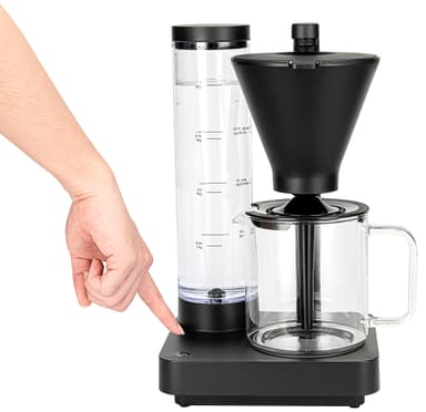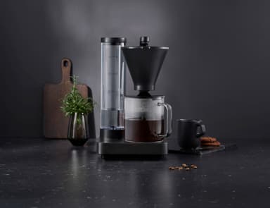 ECBC-godkända Wilfa Performance Compact-kaffebryggare CM8B-A100 har en löstagbar vattentank på 1 liter, ett pumpsystem utformat för att tömma enheten på vatten efter bryggning för renare kaffe, samt en automatisk avstängning och anti-droppfunktion.Läs mer om produkten
