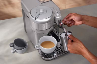 Njut av ditt favoritkaffe i barista-stil, allt från en espresso till en flat white tack vare praktiska Nespresso Vertuo Creatista-kapselmaskin från Sage och dess intelligenta entrycksbryggning, Auto MilQ ångstav och 2l vattentank.Läs mer om produkten