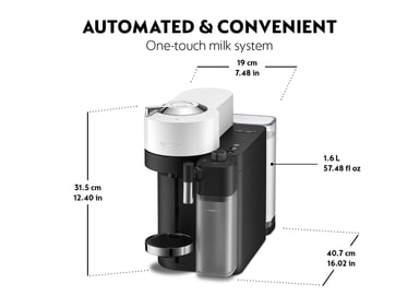 Nespresso Vertuo Lattissima kaffebryggare by Delonghi ENV300.W är en unik maskin som låter dig välja din favoritkopp från fem olika koppstorlekar.Läs mer om produkten