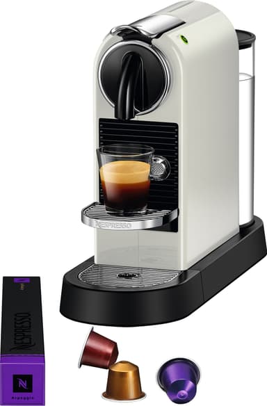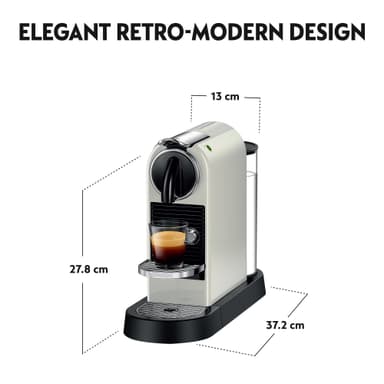 Eleganta och tidlösa NESPRESSO® CitiZ kaffemaskin av DeLonghi erbjuder dig snabbt och gott kaffe i vit design.Läs mer om produkten