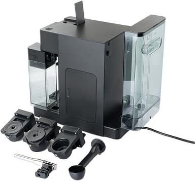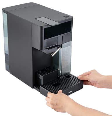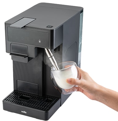 Med Volo Multi kan du välja mellan alla ovanstående drycker med ett enkelt knapptryck. Du kan också välja hett vatten om du vill ha det. Volo Multi låter dig även välja hur du vill skumma mjölken. Du kan antingen använda en Dolce Gusto-kapsel, använda den automatiska skumfunktionen, eller öppna locket på sidan och byta ut mjölkbehållaren mot en manuell mjölkskummare för att få full kontroll över skummandet.