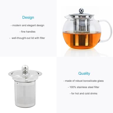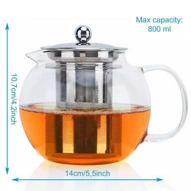 800 ml glaskanna av borosilikatglas med silinsats värmetålig lämplig för varma och kalla drycker, te, kaffe, vatten och mycket mer.