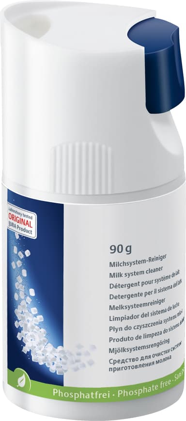 Håll din automatiska kaffemaskin ren från proteiner och mjölkfett med JURA rengöringstabletter för mjölksystem 90 g 24158. Förpackningen innehåller 30 fosfatfria tabletter och en påfyllbar flaska.Läs mer om produkten
