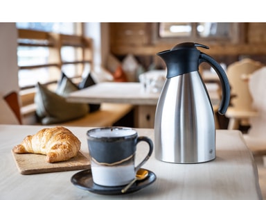Matt, rostfritt stål av hög kvalitet. Insats av rostfritt stål med dubbla väggar som är extremt robust och stöttåligt. Unikt och praktiskt hällsystem. Kan skötas med en hand. Håller varmt i 12 timmar och kallt i 24 timmar. Tillverkad i TysklandLäs mer om produkten