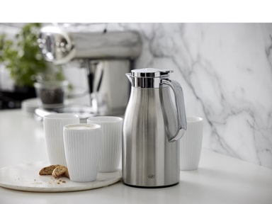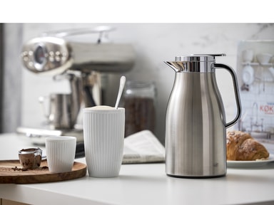 Alfi Skyline kombinerer kul stil med høy funksjonalitet på kjøkkenet og på salongbordet. Termos av högkvalitativt, rostfritt stål. Dubbelväggad AlfiDur-insats av isolerande och härdat vakuumglas. Håller vätskan varm i 12 timmar och kall i 24 timmarLäs mer om produkten