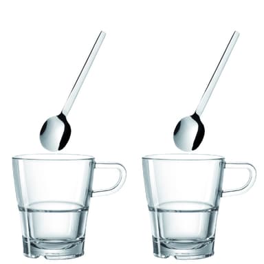 Mysigt kaffeset med två stycken kaffeglas och skedar från populära LeonardoLäs mer om produkten