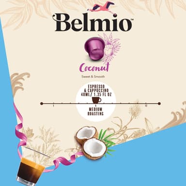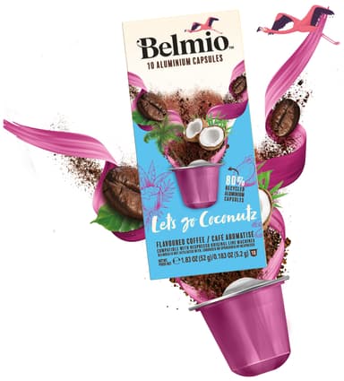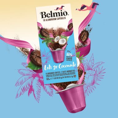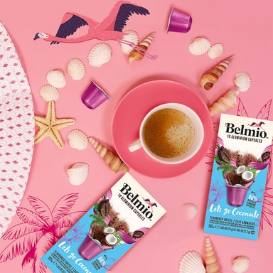 Belmio Let's Go Coconutz Nespresso-kapslar mixar mjuk espresso med kokos, karamell och nöttoner. Intensitet 7 för en söt kaffepaus, perfekt i desserter och mocktails.Läs mer om produkten