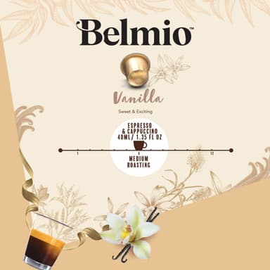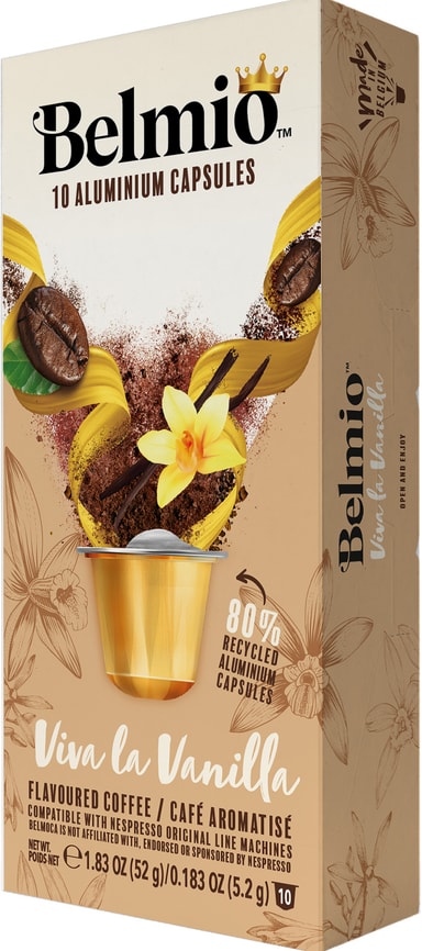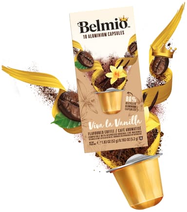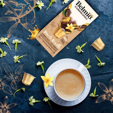 Belmio Viva La Vanilla kaffekapslar för Nespresso erbjuder ett mjukt, balanserat espresso med en touch av söt vaniljsmak. Inspirerad av Madagaskars doftande vaniljblommor ger denna mellanrostade blandning en känsla av värme i din kopp.Läs mer om produkten