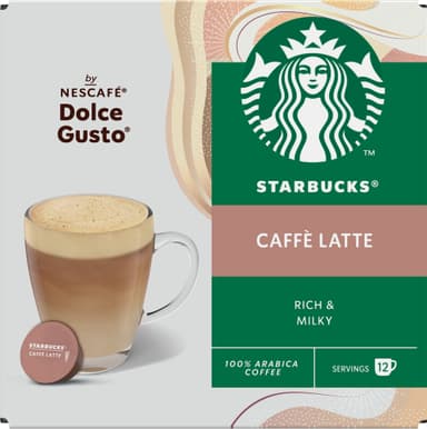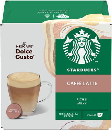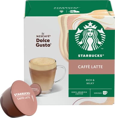Upplev STARBUCKS by NESCAFÉ Dolce Gusto Caffè Latte kapslar - rikt kaffe möter krämig mjölk i en smart kapsel. Inspirerad av den ikoniska STARBUCKS Caffè Latte, njut av slätt, krämigt kaffe hemma med enkel kapsellösning.Läs mer om produkten