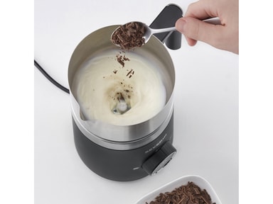 Mjölkskummare Spuma 500 med innovativ funktion som gör varm choklad från hela chokladbitar. Lämplig för kall och varm skumning samt uppvärmning av mjölk. 500 ml mjölkbehållare i rostfritt stål. 500 watt.Läs mer om produkten