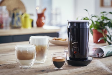 Förbered utsökt cappuccino eller frappé med Philips Senseo Milk Twister mjölkskummare CA6500/60 som kan bereda rikt och krämigt mjölkskum, både varmt och kallt. Non-Stick-beläggning gör att den är extra lätt att rengöra.Läs mer om produkten