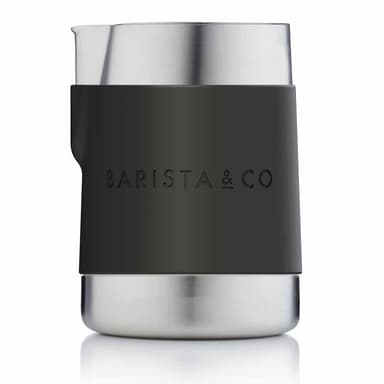 Mjölkkanna har en handtagslös design för att förbättra kontrollen när du häller. Efter råd från professionella baristor lämnade vi metallen exponerad i botten att beröra för att kolla mjölkens värme och pipen bred för att balansera en ångstav.Läs mer om produkten