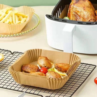 Skyddar fritösen: Dessa fettsäkra pappersark har en förhöjd kant som även skyddar sidan på fritösen. Skyddspappret håller din Air Fryer ren och fräsch och minskar behovet av rengöring efter användning.