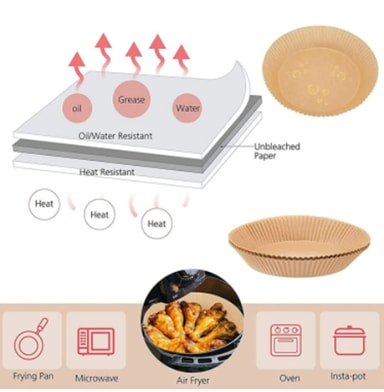 Air Fryer engångspapper för fritös 16 cm 100 st Vit