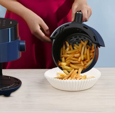 Dessa fettsäkra pappersark har en förhöjd kant som även skyddar sidan på fritösen. Skyddspappret håller din Air Fryer ren och fräsch och minskar behovet av rengöring efter användning.Läs mer om produkten