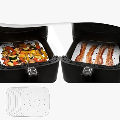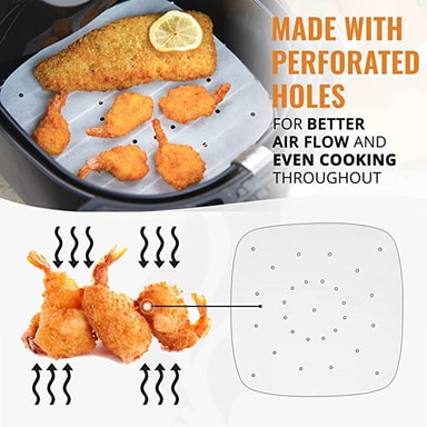 Skyddar fritösen: Dessa fettsäkra pappersark skyddar botten på fritösen. Skyddspappret håller din Air Fryer ren och fräsch och minskar behovet av rengöring efter användning.