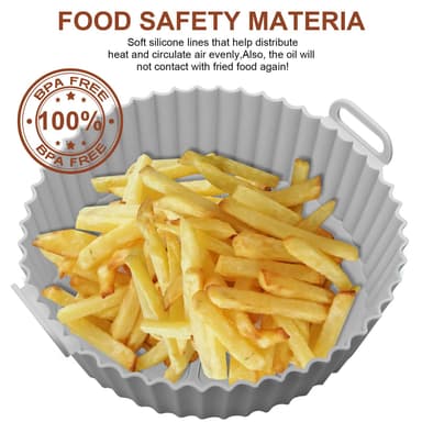 Genom att lägga maten i en behållare slipper du klibbiga och brända rester i din Airfryer. Praktisk design med hög kant. Underlättar även att ta in och ut maten. Skålen är tillverkad av silikon av livsmedelskvalitet som är lätt att hålla rent. Den kan diskas i diskmaskin.