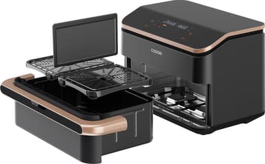 Cosori Dual Blaze TwinFry airfryer CAF-TF101S har en effekt på 2800 W och en kapacitet på tio liter, vilket gör den perfekt för större måltider eller speciella tillfällen. Den har två korgar, vardera med två värmeelement, som gör det möjligt att tillaga två olika rätter samtidigt. Airfryern har även Vesync-appanslutning för ökad effektivitet.