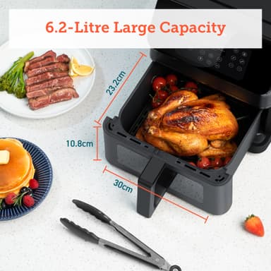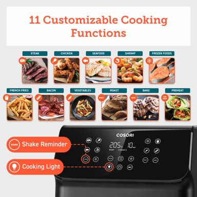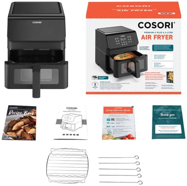 Cosori Premium II Plus airfryer CAF-P653-KEUR är packad med praktisk teknik och har ett generöst utbud av praktiska funktioner, med en 6,2 l korg, ett genomskinligt fönster, AdaptIQ-teknik och 11 tillagningsfunktioner för att lyfta din matlagning.Läs mer om produkten