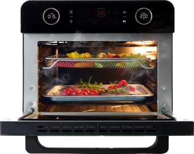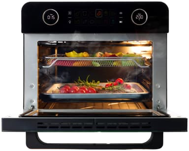 2250W F&B airfryugn 34763 har en kapacitet på 25 l, perfekt för familjemåltider och satsvis matlagning. Den erbjuder 12 förinställda program och använder 360-graders varmluftscirkulation för att fritera, steka, grilla, baka och torka mat.Läs mer om produkten
