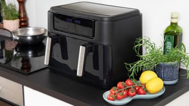 Gastronoma dubbelzon airfryer 18290008, med 10L kapacitet och 10 förinställda funktioner, är ett utmärkt tillskott till köket. Dess digitala pekskärm och keramiska beläggning ökar funktionaliteten.Läs mer om produkten
