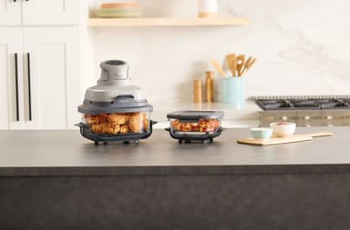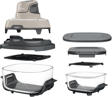 1701W Ninja Crispi airfryer FN101EUST inkluderar 1,4L och 3,8L glasbehållare för olika portionsstorlekar. Med 4 lägen: Air Fry, Roast, Reheat, Keep Warm, möjliggör matlagning, servering och förvaring i samma behållare.Läs mer om produkten