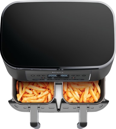 Med den 2400 watts starka Ninja Dual Zone-airfryern DZ300EU kan du laga två rätter samtidigt i separata 3,8-litersfack. Med sex tillagningsfunktioner och Sync- eller Match-alternativ är det enkelt att laga en komplett måltid på ditt sätt.Läs mer om produkten