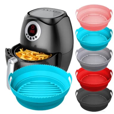 Rund form av livsmedelsgodkänt silikon. Den passar perfekt in i fritösen och förhindrar klibbiga och fastbrända matrester i din Air Fryer. Behållaren är återanvändbar och kan diskas i diskmaskin. Den upphöjda kanten håller maten på plats och fångar upp smulor och överflödigt fett. Formen kan tryckas ihop så den tar mindre plats när den inte används.