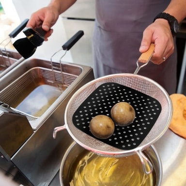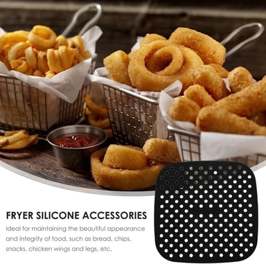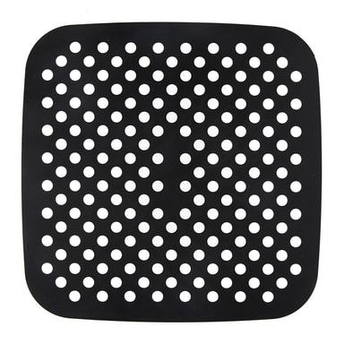 Silikonunderlägg för Airfryer, återanvändbar och i non-stick-kvalitet. Maten fastnar inte und inlägget är lätt att rengöra. Mattan skyddar varmluftsfritösen från repor och matrester och den motverkar öjämn uppvärmning av maten.