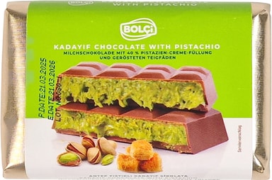 Bolci Dubai-choklad KLIPP8771 är en rik, smakrik blandning av slät mjölkchoklad, sammetslen pistagekräm och skarpa kadayif-strängar – som ger en smak av Mellanöstern i varje tugga.Läs mer om produkten