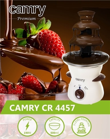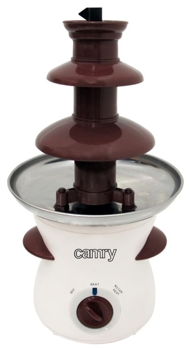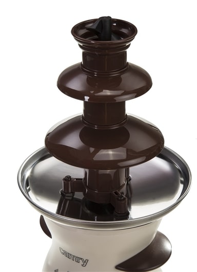 Med den här chokladfontänen får du tre nivåer av härlig choklad i flytande form. Passar utmärkt att använda under fredagsmyset eller när du ska umgås med dina vänner och är alltid ett uppskattat tillskott på bordet. Chokladen cirkulerar läckert genom fontänen och strömmar från den översta nivån ner till de andra i ett väldoftande och välsmakande kretslopp. Förutsatt att du valt en chokladtyp som du gillar kommer den krämiga chokladen att smaka himmelskt gott! Testa att variera mellan mjölkchoklad och mörk choklad. Även vit choklad kan fungera, men då den bränns lättare gäller det att vara försiktig om sådan ska användas.