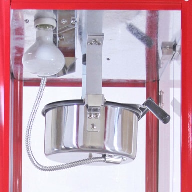 För att förhindra spill av ditt värdefulla popcorn finns ett lock ovanpå 8oz-kitteln inuti maskinen, där poppat majs snabbt kan släppas ut i visningskammaren nedanför. Oroa dig inte för att ditt popcorn blir kallt heller, eftersom den interna värmelampan inte bara får det att se bra ut utan också håller det varmt.