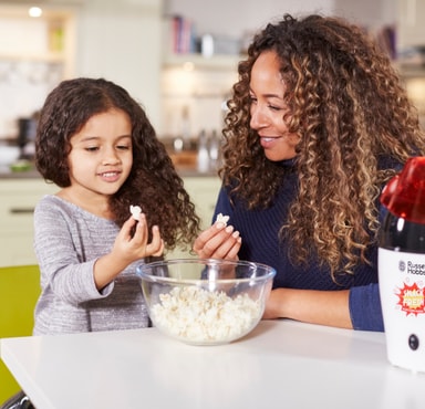 Russell Hobbs Fiesta popcorn maker 23581036002 gör 12 portioner popcorn utan olja eller tillsatta fetter. Har varmluftsteknik, på/av-knapp, och smörsmältande bricka för enkelhet.Läs mer om produkten