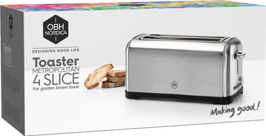 Fixa läcker toast med OBH Nordica Metropolitan brödrost OBH2273.Du får fyra brödfack, 3 rostnivåer och alternativ för uppvärmning eller upptining av bröd. Brödrosten levereras med en löstagbar smulbricka som lätt kan rengöras.Läs mer om produkten