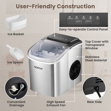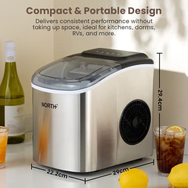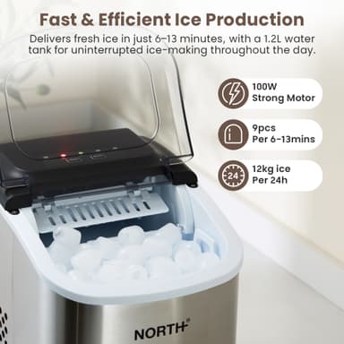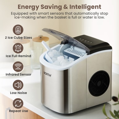 North ismaskin 205204 levererar färsk is på några minuter med sin kapacitet på 1,2 liter och snabba istillverkningscykel. Med automatisk självrengöring och en snygg, kompakt design är den perfekt för hem, kontor eller små företag.Läs mer om produkten