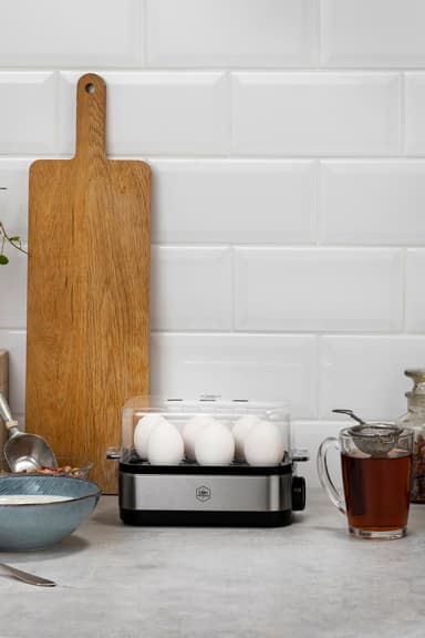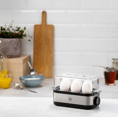 Koka dina ägg till perfektion med OBH Nordica äggkokare OBH6731. Äggkokaren kommer med transparent lock och plats för upp till 6 ägg. Ett pip indikerar när äggen är klara.Läs mer om produkten