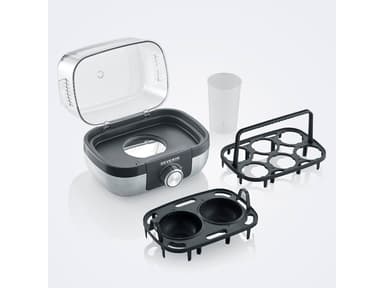 Äggkokare med hölje av rostfritt stål och med plats för 6 ägg. Du väljer om timern ska ställas in på löskokta, medium eller hårdkokta ägg. Larmet talar om för dig när äggen är klaraLäs mer om produkten