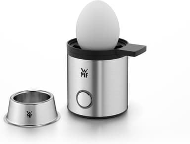 Med WMF KITCHENminis äggkokare kan du förbereda ett perfekt kokt ägg på ett ögonblick utan att behöva titta och komma ihåg rätt tillagningstid. Ägg är en av de mest näringsrika råvarorna och är idealisk för t.ex. till frukost, mellanmål, på bröd eller som tillbehör. En äggkokare är en mycket bekväm anordning för en person som lagar dem regelbundet. WMF KITCHENminis äggkokare tillagar ett ägg i storleken S–XL. Den är naturligtvis gjord av högkvalitativt Cromargan rostfritt stål.