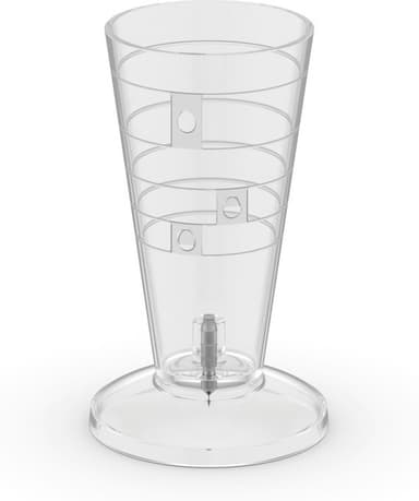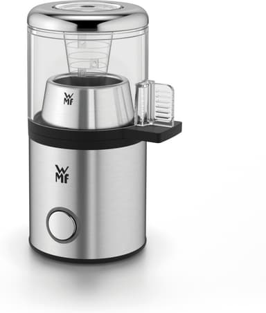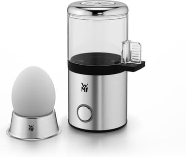 Den kompakta äggkokaren sparar utrymme, så den är lätt att förvara på displayen. Det genomskinliga locket av högkvalitativ Tritan-plast innehåller inte BPA, är slitstarkt och lätt att rengöra. Måttkoppen används för att dosera den mängd vatten som är lämplig för äggets önskade hårdhetsgrad. Spisen piper när ägget är klart. Det är så enkelt och du kommer att lyckas varje gång. En äggkopp av Cromargan rostfritt stål ingår, som kan förvaras inuti vattenkokaren för att spara utrymme. Effekt 56 W. Bredden på WMF KITCHENminis äggkokare är 6,9 cm, djup 5 cm och höjd 11,8 cm.