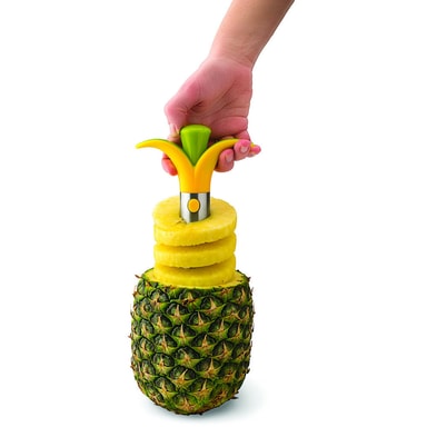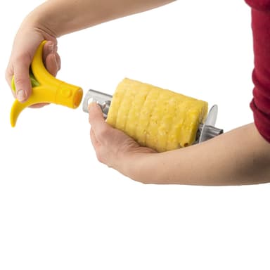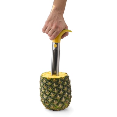 Ananasskärare i rostfritt stål och plast. Skär av toppen på frukten, skruva ner verktyget i frukten och lyft ur....färdiga ananasskivor.Diskmaskinssäker 25,5 cm högLäs mer om produkten