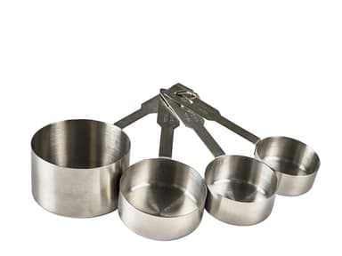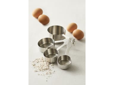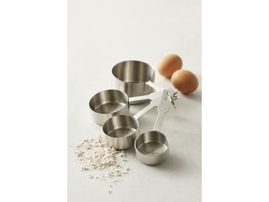 Måttsats med 4 måttenheter i rostfritt stål. Nu kan du snabbt och enkelt mäta upp socker, mjöl, kärnor, mjölk, vatten osv. utan att behöva ta fram litermåttet. Kopparna innehåller 50, 75, 100 och 250 ml, alla i strukna måttLäs mer om produkten
