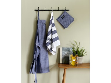 Kökshandduken är tillverkade av återvunna tygrester som annars skulle ha kasserats. Tygresterna sorteras efter färg, rivs till textilfibrer och spinns och vävs sedan på nytt till tyg. Detta gör att det kan finnas nyansskillnader mellan olika partier.Läs mer om produkten