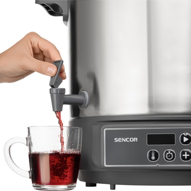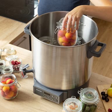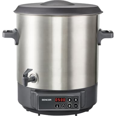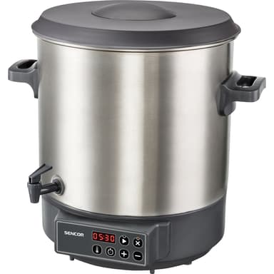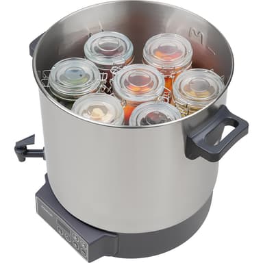 Konservering och sterilisering av frukt och grönsaker. Lämplig för varma drycker, soppor och gulasch. Lätt att rengöra - hygieniskt rostfritt stål.Inbyggt utloppskran - Lämplig för tappning av glögg, kaffe, te, varm saft eller andra heta drycker.Läs mer om produkten