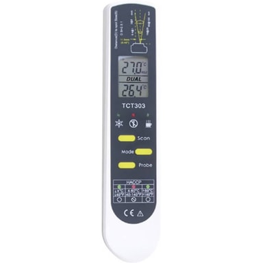 TFA Dostmann 31.1119.K IR-termometer och instickstermometer (HACCP) Optik 2:1 -55 - +250 °C Beröringsfri IR-mätningUtfällbar sticksensor · Visar av aktuell temperatur · Maximi- eller minimitemperatur under mätning · Hold- och Lock-funktion ·Läs mer om produkten