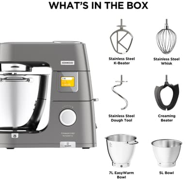 Kenwood Chef XL Titanium Patissier köksmaskin KWL90004SI är en mångsidig hjälpreda utrustad med en 7-liters EasyWarm-skål , en extra 5-liters skål, BakeAssist-pekskärm och en mängd olika förinställda SimpleTouch-program.Läs mer om produkten
