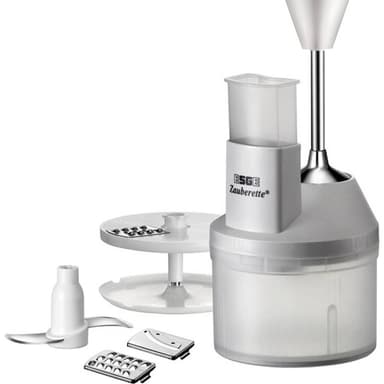 ESGE Zauberette Matberedare Grå, VitAlla delar (förutom transmissionstillsats) tål maskindiskFör hackning, rivning och skärningTransparent pressklossLäs mer om produkten