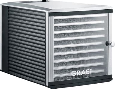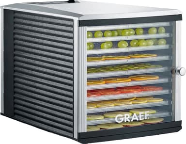 630W Graef mattorkare DA510 har 10 brickor med en total yta på 1,08 m². Idealisk för att torka frukt eller svamp och förvandla dem till hälsosaemma mellanmål. Den erbjuder justerbar temperatur från 30 till 70 °C och en praktisk timer.Läs mer om produkten