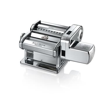 Marcatos klassiska pastamaskin med motor. Maskinen har ställbar tjocklek på lasagneplattorna. Till maskinen hör även valsar för fettuccine (6 mm) och tagliolini (1.5 mm). Maxbredd på lasagneplattor är 15 cm och bordsfäste ingår.Läs mer om produkten