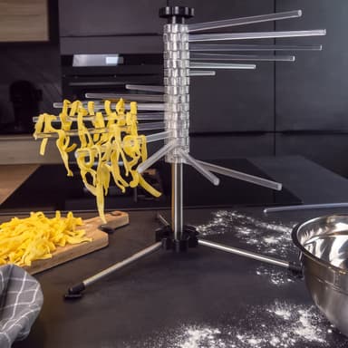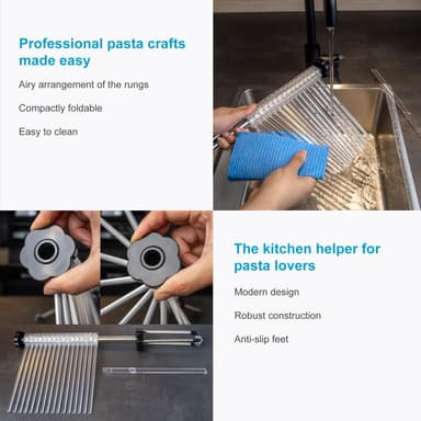 pastahyllan har gott om plats att hänga upp din pasta och utrymmet mellan stängerna förhindrar att pastan fastnar i varandra.